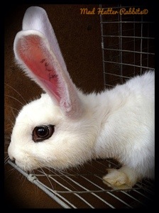 The Blanc de Hotot is a medium-sized rabbit breed originally developed in France. It is a compact, thickset white rabbit with spectacle-like black rings around each dark eye. First bred in Hotot-en-Auge, Normandy, France in the early 1900s, the breed spread throughout Europe and into North America by the 1920s. Initially unpopular in the United States, the Hotot (pronounced oh-toe) died out in the U.S., and suffered population decline in World War II-era Europe. It began to spread again in the 1960s and 1970s, and was re-imported to the U.S. in 1978. Today it is recognized by the British Rabbit Council and the American Rabbit Breeders Association, but is considered globally endangered, with a listing of “threatened” status by the American Livestock Breeds Conservancy. Blanc de Hotot are the #1 rare breed rabbit in the U.S. as listed by the 2010 Rare Breed Rabbit list.